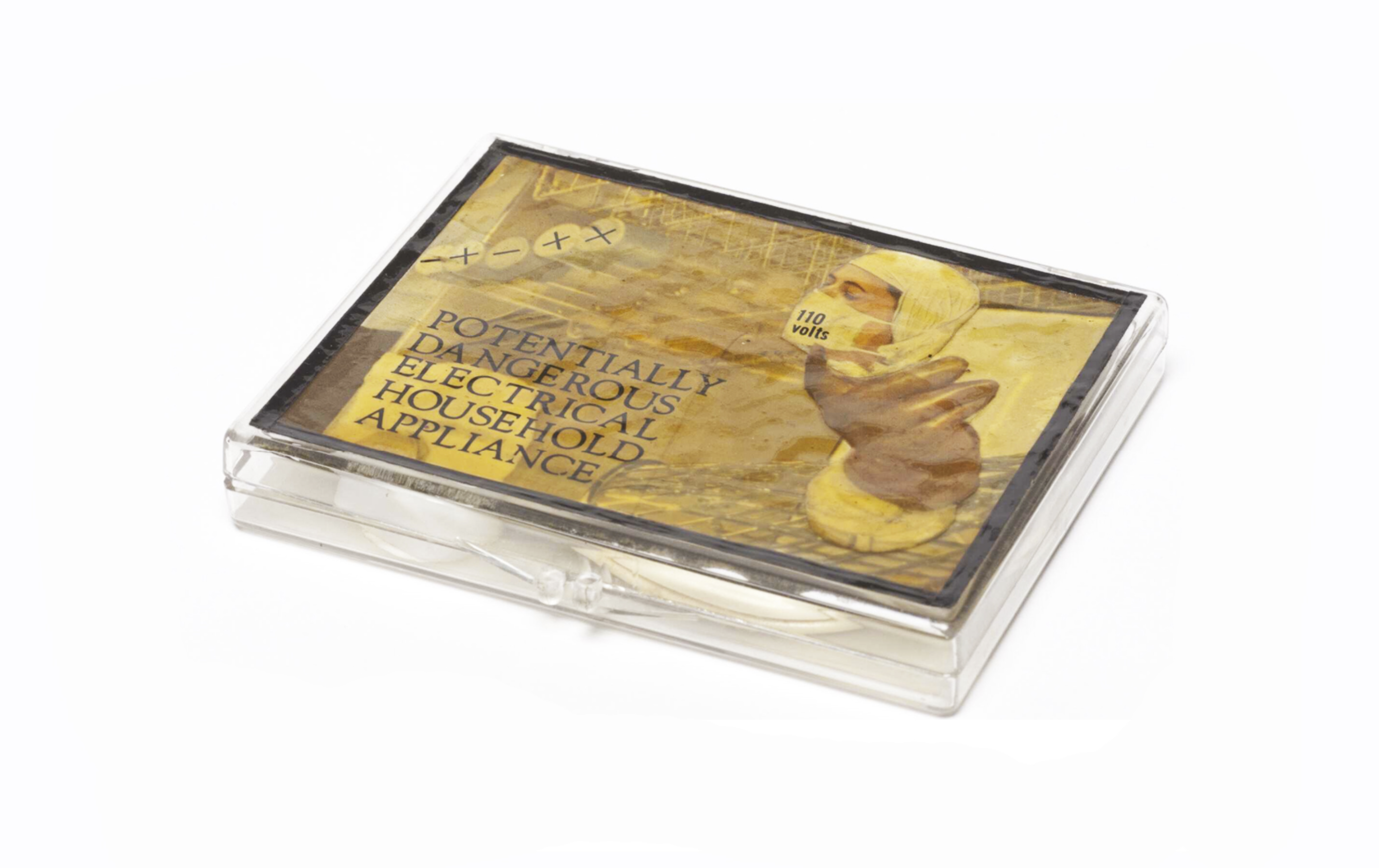 Maciunas sketched out these ideas (see above) and produced a couple of different cover graphics for Potentially Dangerous Electrical Household Appliance. The work consists of a red hinged plastic box, containing an electrical cord with two plug ends. It shares much in common with Gábor Altorjay’s Object for Short Circuit, published the same year in Germany, by Vice-Versand (below).