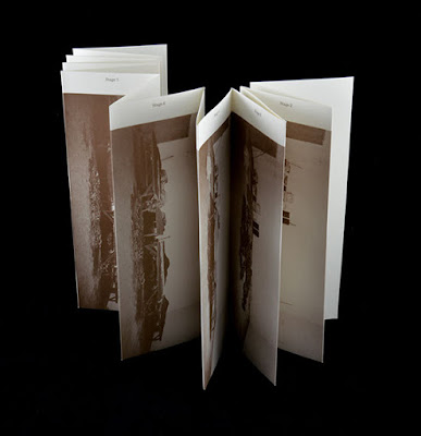 Edited by Marian Goodman for inclusion in the Artists & Photographs box (which also included Christo, Douglas Heubler, Allan Kaprow, Joseph Kosuth, Sol LeWitt, Bruce Nauman, Dennis Oppenheim, Ed Ruscha, Andy Warhol and others) the leporello book presents 16 sepia-toned photos of the installation showing twelve stages of the work, along with detail shots of the piece.